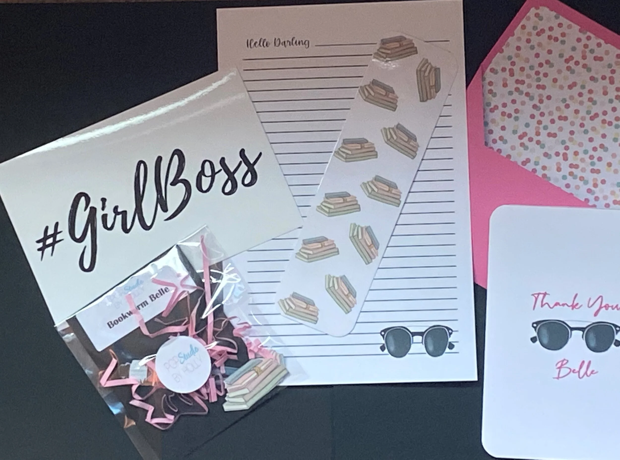 To celebrate our launch we are doing a giveaway-one lucky winner will receive a bookmark, a Hello Darling letter page with colorful envelope, a girlboss picture, and our bookworm belle sticker pack.