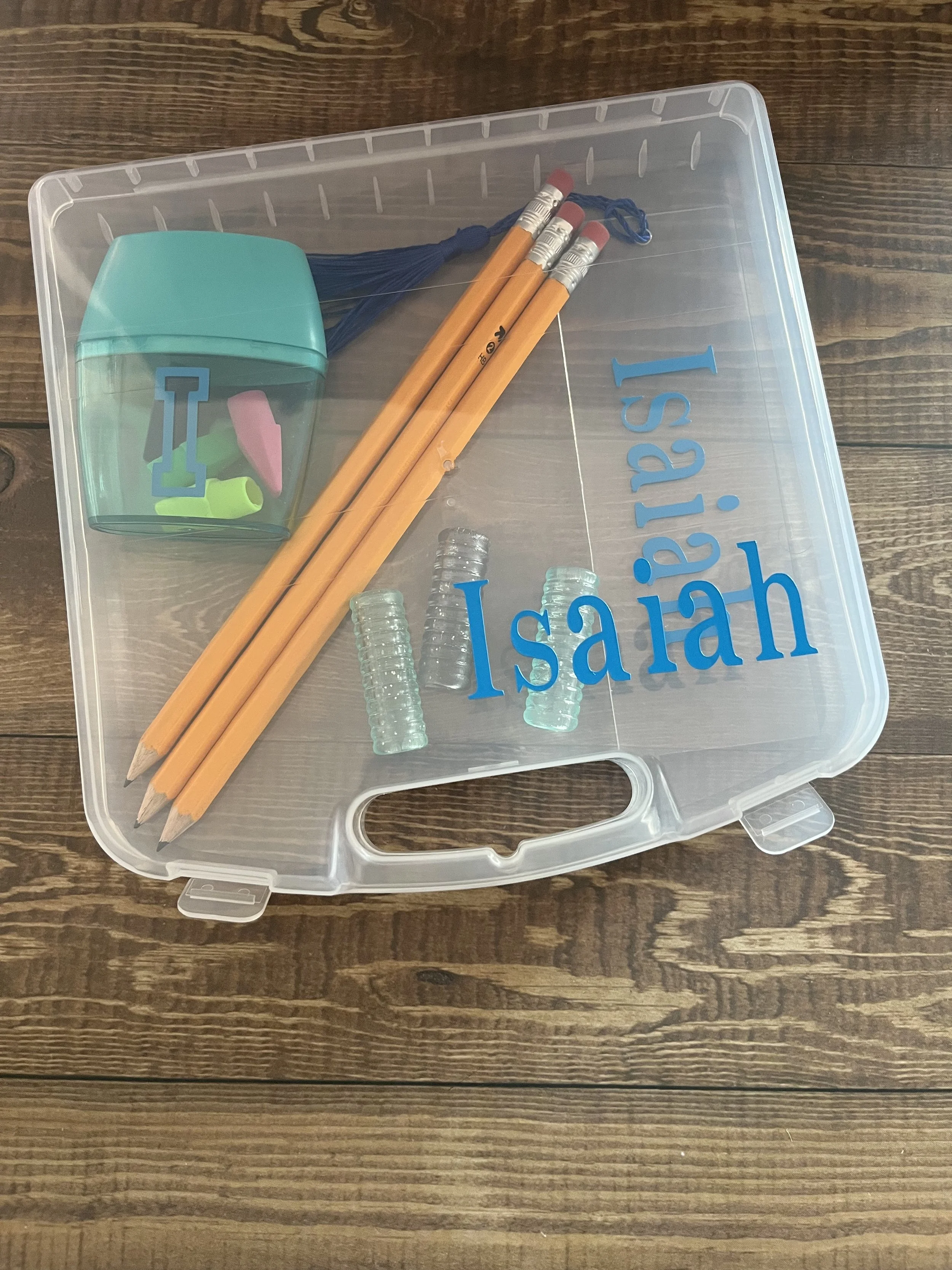 Who can resist a pencil case? I know I cannot. Adding a name or initial to a pencil can be a great way to help your pencil case stand out in the room.
